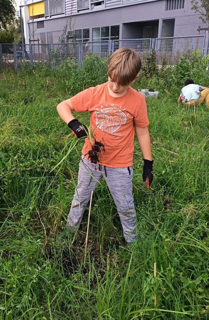 Prendre soin des espaces plantés, des espaces naturels au sein du collège est une des missions des éco-délégués. Pour débuter cette année scolaire, nous sommes allés nous occuper de la micro-forêt qui avait besoin d’un bon désherbage car le liseron notamment commençait à bien envahir nos plants ! Nos petits arbres poussent bien par ailleurs depuis Décembre dernier et certains atteignent déjà 1 mètre de hauteur !